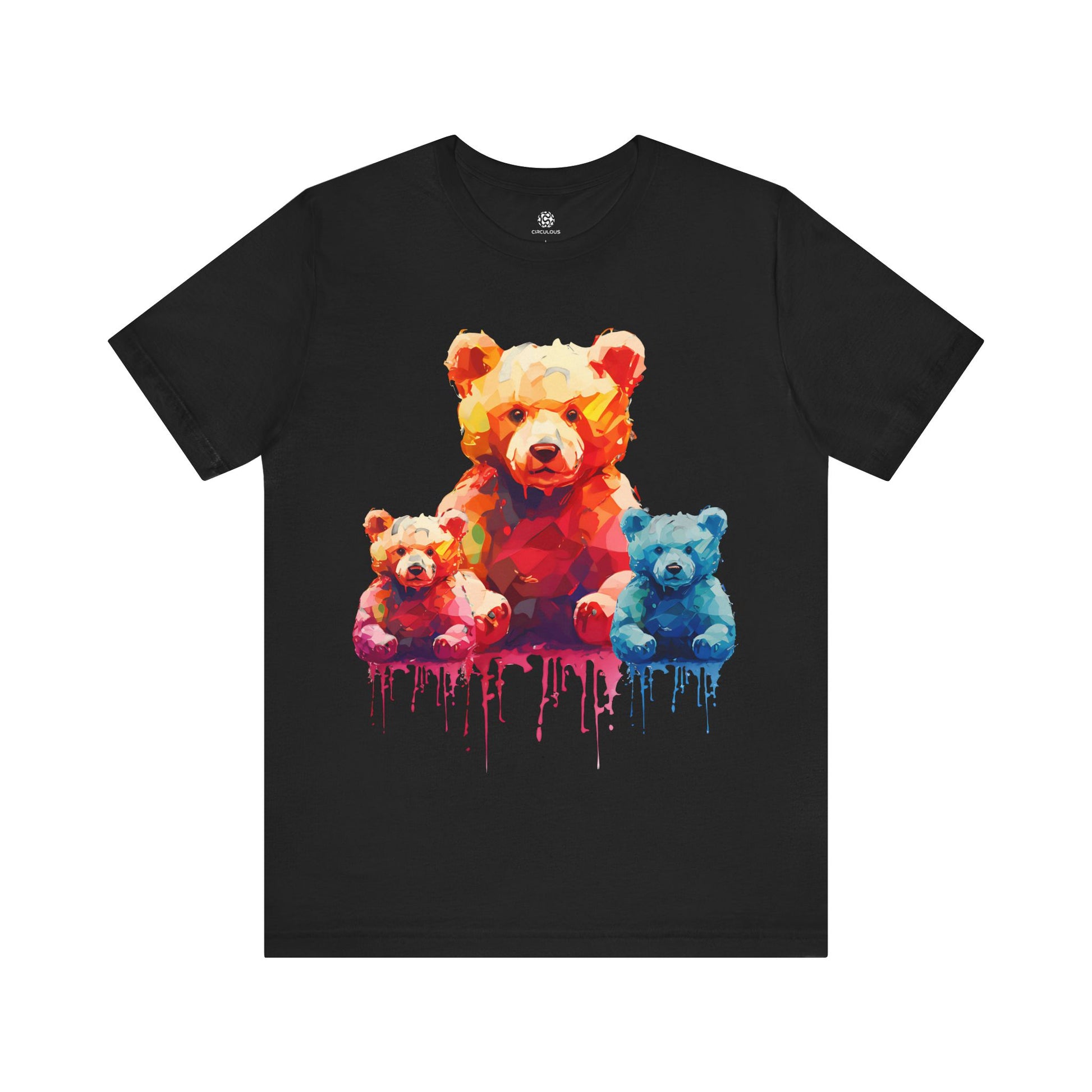Introducing the 'Liquid Bears' T-Shirt, a whimsical display of three gummy bears melting into a colorful, sweet sensation.
